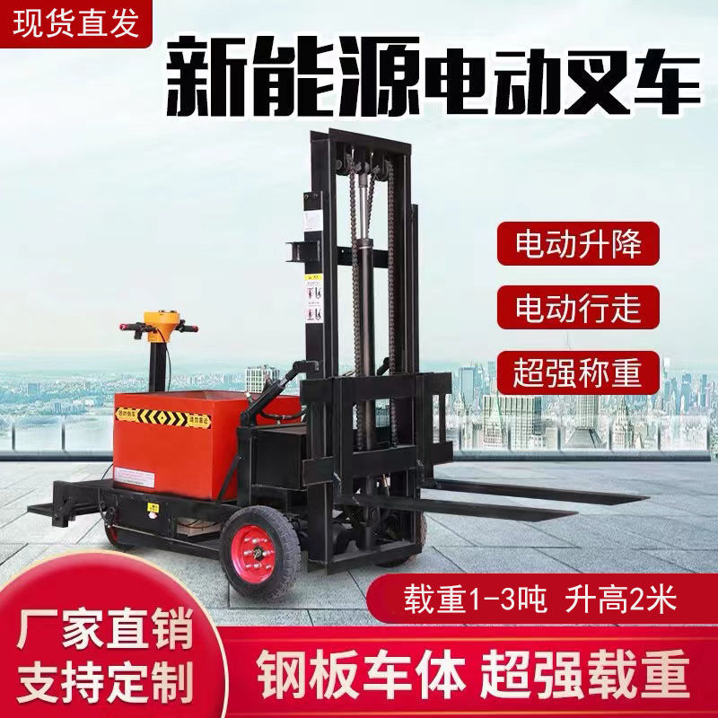 沂源县小型电动叉车1吨站驾式2吨液压升高铲车全自动仓储堆高车